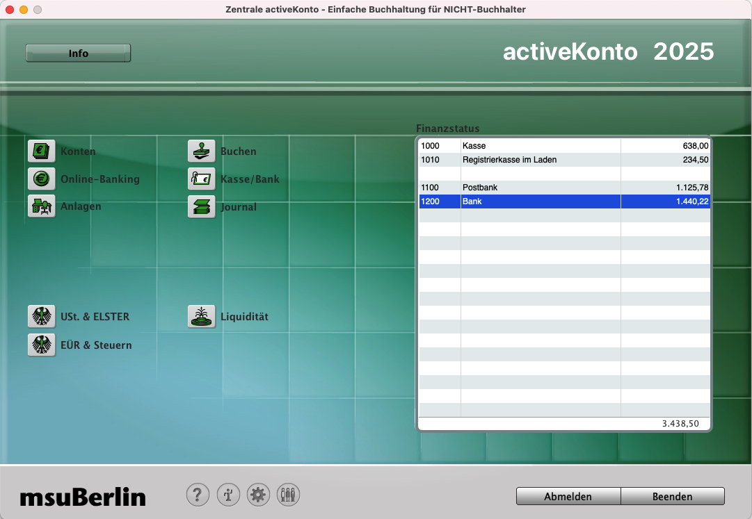 Wieviel Geld habe ich in der Kasse und auf der Bank?
